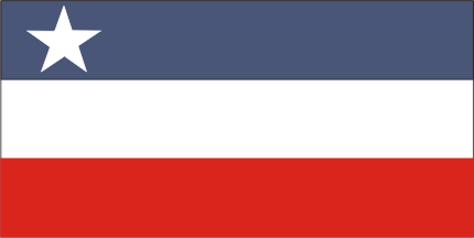 "1993: The most recently seen flag. Three equal horizontal stripes blue-white-red with a white 5-pointed star near the hoist in the blue stripe."