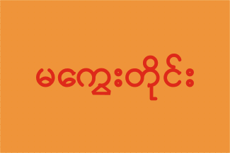 The flag is orange, with the name written in red across the centre in Burmese script.