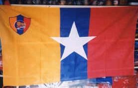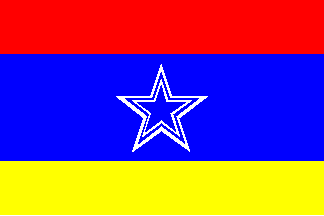 I'm not sure if the flag is ever used undefaced or not, that is, without any badge in the upper hoist corner. Speaking of the badges, they are also affixed to the flag in a double sided configuration, meaning they appear in the obverse on both sides of the flag. Lastly, I saw several examples of this flag where the tribars were equal in length, like an Italian flag. In these examples, the white star was incorporated entirely within the center blue bar such as with Cameroon's or Senegal.