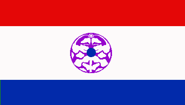 Recently the Minister of Foreign Affairs Mr. Abel Tweed and the South Pacific regional charge d'affairs sent me much documentation and I redrew the flag according to the official documentation. The flag is three horizontal stripes of red, white and blue, with the emblem in the center. Several times is reported the same flag but with the central stripe double wide. The official name of the country is the United Karenni independent States, but is abrreviated United States of Karenni. The states are Bawlake, Kyebogyi and Kantarawaddy. The emblem has four fish and four toad and a twelve pointed star.