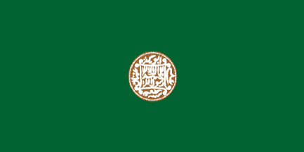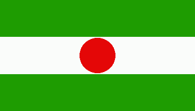 A green flag with a small seal bearing an ornate pattern of white on brown. The reliability of this flag is unknown. [Ed.]