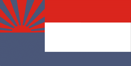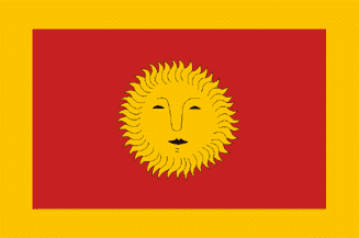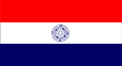 "Kachinland (Kachin Independence Orgnization) - Burma". Similar to the above, but with stripes of equal height and smaller emblem. Identical to "Hainan".