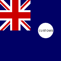 2. (2) In addition to the Blue Ensign hoisted on the vessel's aft, vessels in the service of the Customs will fly also a flag on the top of the vessel in the shape of square blue flag with the symbol of the British flag on the top close to the hoist and the word 'CUSTOMS' written in the end of the flag.