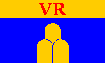 Blazon: Azure a triple-mount Or on a chief of the same the letters VR Gules. Note there is another