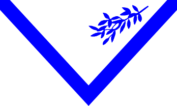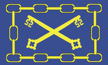 Blue flag with a yellow chain in orle, on its centre two yellow, crossed keys.