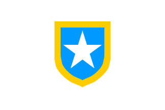 A banner of arms, blazoned: Azure a mullet Argent a bordure Or.