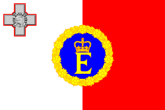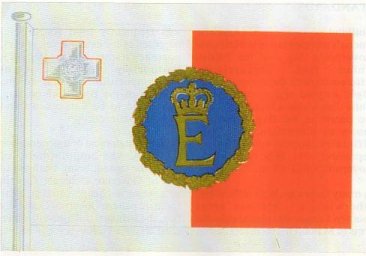 personal flag which is quite separate from the Royal Standard and is a square royal blue flag bearing a crowned initial E within a ring of stemmed roses, all in gold. In Commonwealth countries which she is Queen of, a personal flag for that realm is used which consists of a banner of the arms of that country with a blue disk bearing the gold crowned 'E' and which is bordered by the gold ring of roses. So the Maltese standard referred to would fit that pattern, though technically it is not a standard but a personal flag.