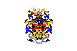 between two somethings. Mural crown. Manteling blue and yellow. Crest: a