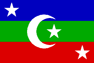 Whilst the British were in occupation of Gan the people of Addu and the southern group of islands formed the United Suvadivian (sic) Republic with a flag of its own, in opposition to the Maldives government. The flag was horizontally blue, green and red, with a crescent and star over all in the centre and a star in the upper hoist and lower fly, all in white. The breakaway state was suppressed in late 1963.