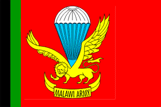 In the centre of the red panel is the insignia of the Malawi Army in yellow