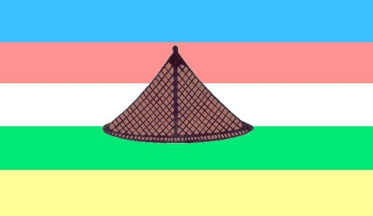 I saw this flag in TV and reported it mistakenly as the flag of Sandakan. The sun I reported as white circle and the green as arms. Later I received information from Sandakan that this wasn't the city flag, now we know it is the SPP flag.