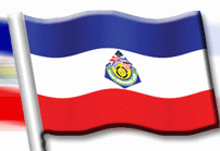 Horizontal tricolor, blue, white and red, approximately 2:3. In white stripe, a coat of arms.
