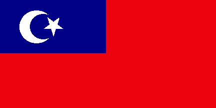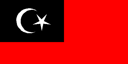 Flag of the Johore police (as the national ensign but the fly red and the crescent and star white). The crescent is in this position, a little different of the usual one.
