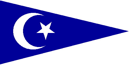 Blue standard: triangular, blue with the blue [sic "white"?] crescent and five-pointed star. It is labeled Blauer Stander wenn ein Staatsbeamter an Bord in Flaggenbuch [1905 edition?].