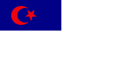 This is labeled in Flaggenbuch [1905 edition?] as Johore Nationalflagge an Bord (fly white, canton blue with red crescent and star).