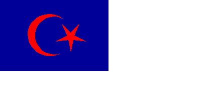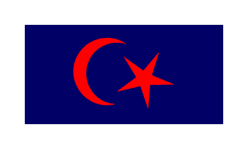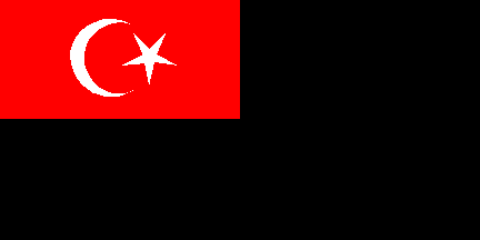 Flaggenbuch 1939 shows the boat ensign of the district authorities as a black flag with a red canton (2/3 of the hoist x 1/2 of the fly) bearing a white crescent and a white 5-pointed star. On the lower fly, a red lozenge with a white crescent and a white 5-pointed star.
