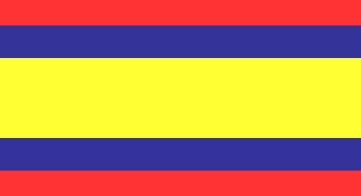 The flag is horizontal with five stripes of red, blue, yellow, blue, red.