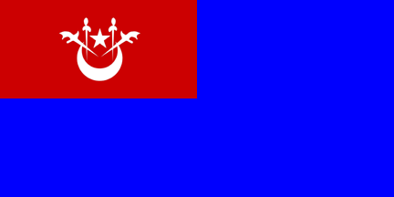 Blue flag with red canton, arms centred on the canton.