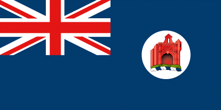 Keywords: melaka | malacca | malaysia | crescent: points to fly (yellow) | star (yellow) | palace | ensign: blue | canton: blue |