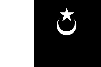 Flaggenbuch 1939 reported it as a plain white flag, but later, probably in 1947 when the national flag was changed and the current one adopted (the third one), a golden emblem was added: two crossed swords under a crown and side by side a book (perhaps the Quran); the swords have a ribbon crossed.