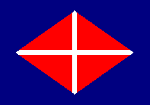 white with a cross half blue (left part) and half red (right part). The design
