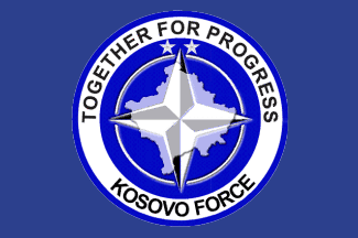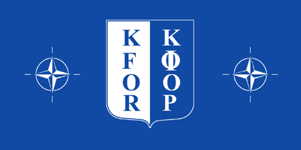 KFOR use the standard NATO flag at any NATO installations. KFOR adopted a new badge in August of 2007, but its use on a flag dated somewhere in mid of 2008.
