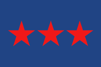 Its blue with three dark red five-pointed stars expressing that the current commander of KFOR is a three-star German general.