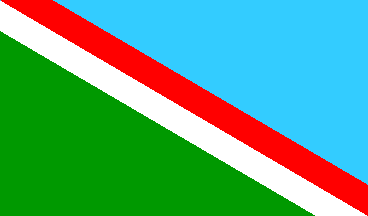 horizontally divided red-white-blue with the coat of arms of the