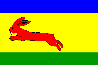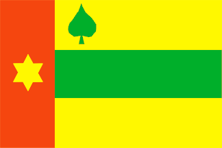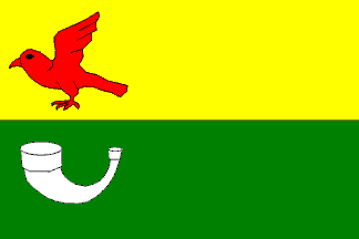 Flag: two equally wide horizontal stripes yellow - green, with in the