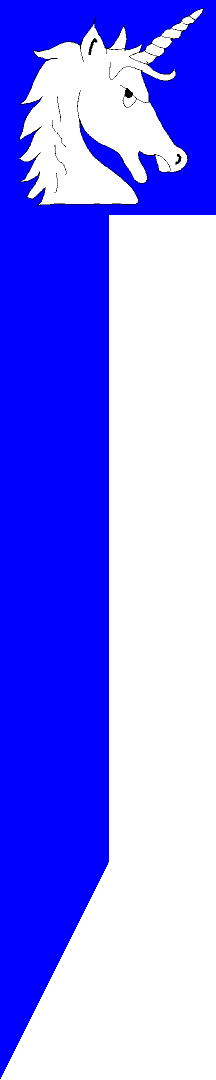 Description: a blue hoist, with a white erased and turned unicorn's