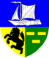 Description: per fess: I. in blue a sailing Frisian scow with sprit-rigging