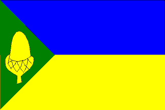 Flagdescription: Twa like hege banen fan blau en giel, in griene hysgear