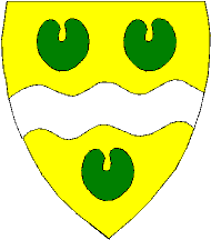 Arms: or a wvy fess argent with three green waterlilyleaves, 2,1.