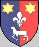 II. in red in chief a golden six-pointed mullet and over all a silver fleur-de-lis and a walking silver lamb, placed under each other.