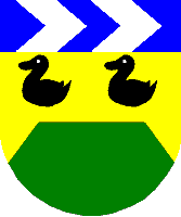 swimming ducks; a blue chief charged with two silver chevrons turned left".