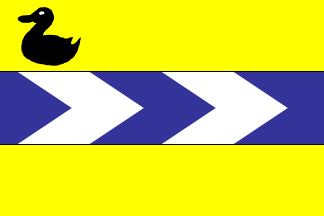 topstripe at the hoist a black swimming duck; in the blue stripe, divided