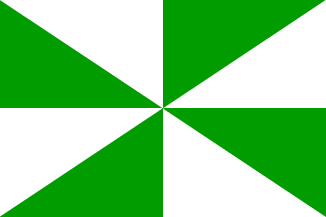 Flagdescription: gearjend yn acht stikken fan grien en sulver.