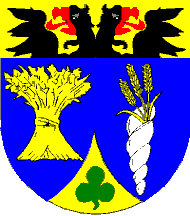 Coat of Arms: divided: I. in blue a golden corn-sheaf; II. in blue a silver sea-horn placed per pale, pointing downwards, containing three golden corn-ears; in chief a double black eagle with red beak and tongue; in blue a golden triangle charged with a green clover.