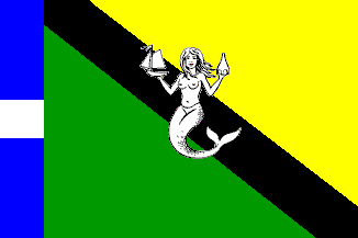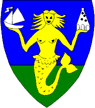 Arms: Azure a mermaid or, holding in her right hand a sailing boat