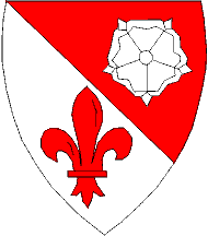 Arms: per bend gules and argent; in gules a rose argent; in argent
