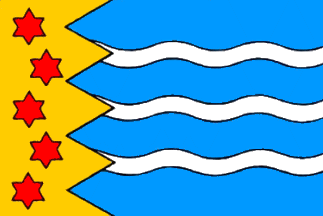 blue flag with the ratio of 2:3 with three wavy narrowed lanes of
