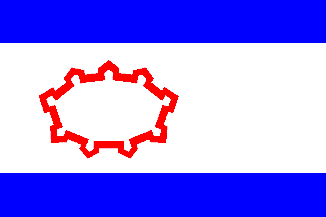 Flag: three horizontal stripes of blue and white, proportioned 1:3:1,