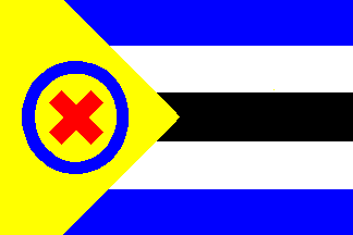 and blue, with an over the length of 1/3 flagheight towards the hoist a