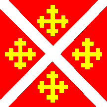 Description: Square, in red a white saltire, with four yellow crosses