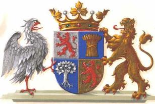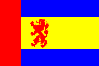 blue - yellow - bluw; on the yellow stripe towards the hoist a red lion.