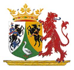 a sash gules, on a rearing black horse with a seamed saddel gules; 3. in