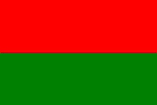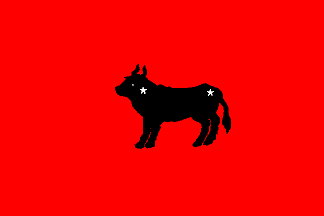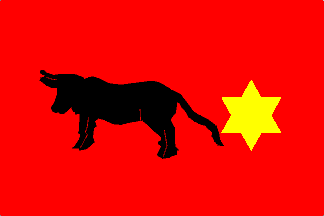 "Red, with a black standing bull, with a six-pointed yellow star.