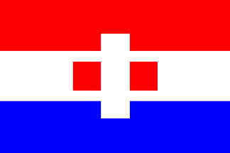 In this flag the cross of the Lordship Zaanden was used ("argent a