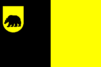 a flag, vertical black and yellow, with the shield of the coat of arms