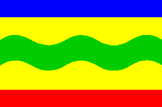 Description: in gold a wavy green fess with in chief a blue letter O